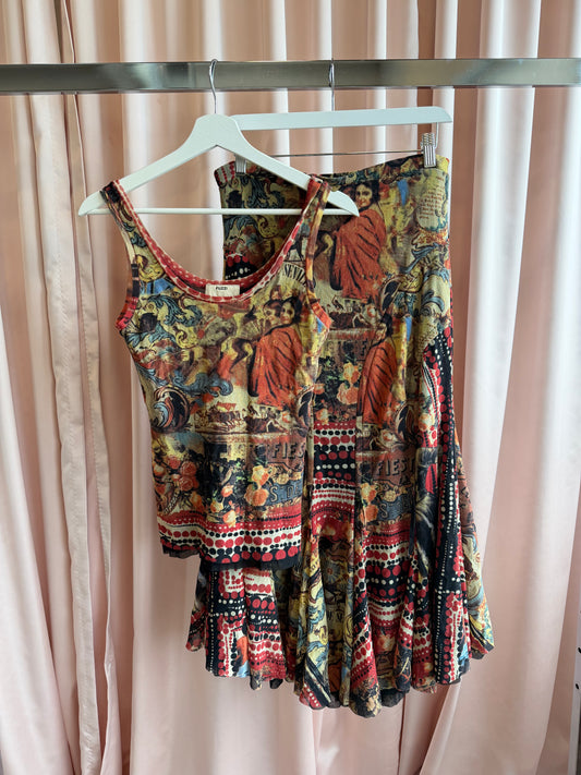 Jean Paul Gaultier Fuzzi Mesh Printed Skirt